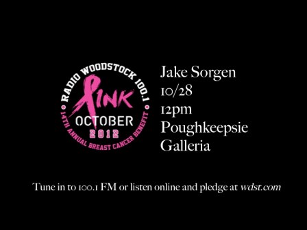 Jake will be playing live on air for WDST to support the 14th annual Pink October Request-a-thon. All proceeds go to support the Vassar Brothers Medical Center in Poughkeepsie. Listen and pledge your support online or come down to the Poughkeepsie Galleria and share in this wonderful event.