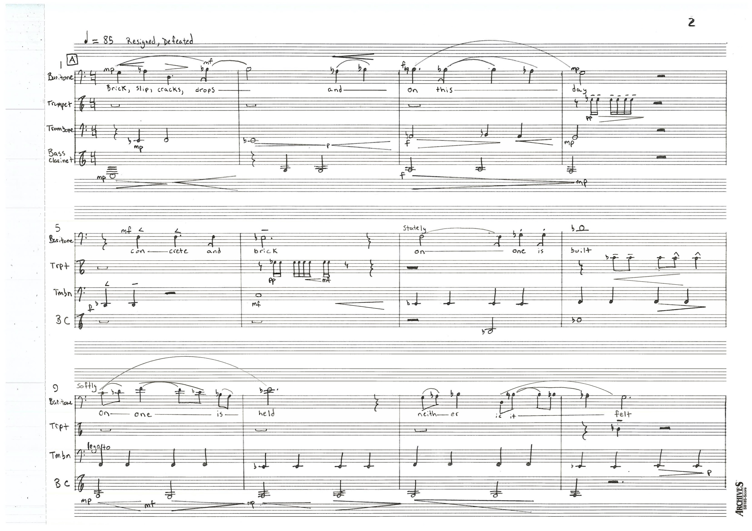 For Baritone Voice, C Trumpet, Bb Bass Clarinet, and Trombone; Originally performed by Loadbang Ensemble; Copyright 2020